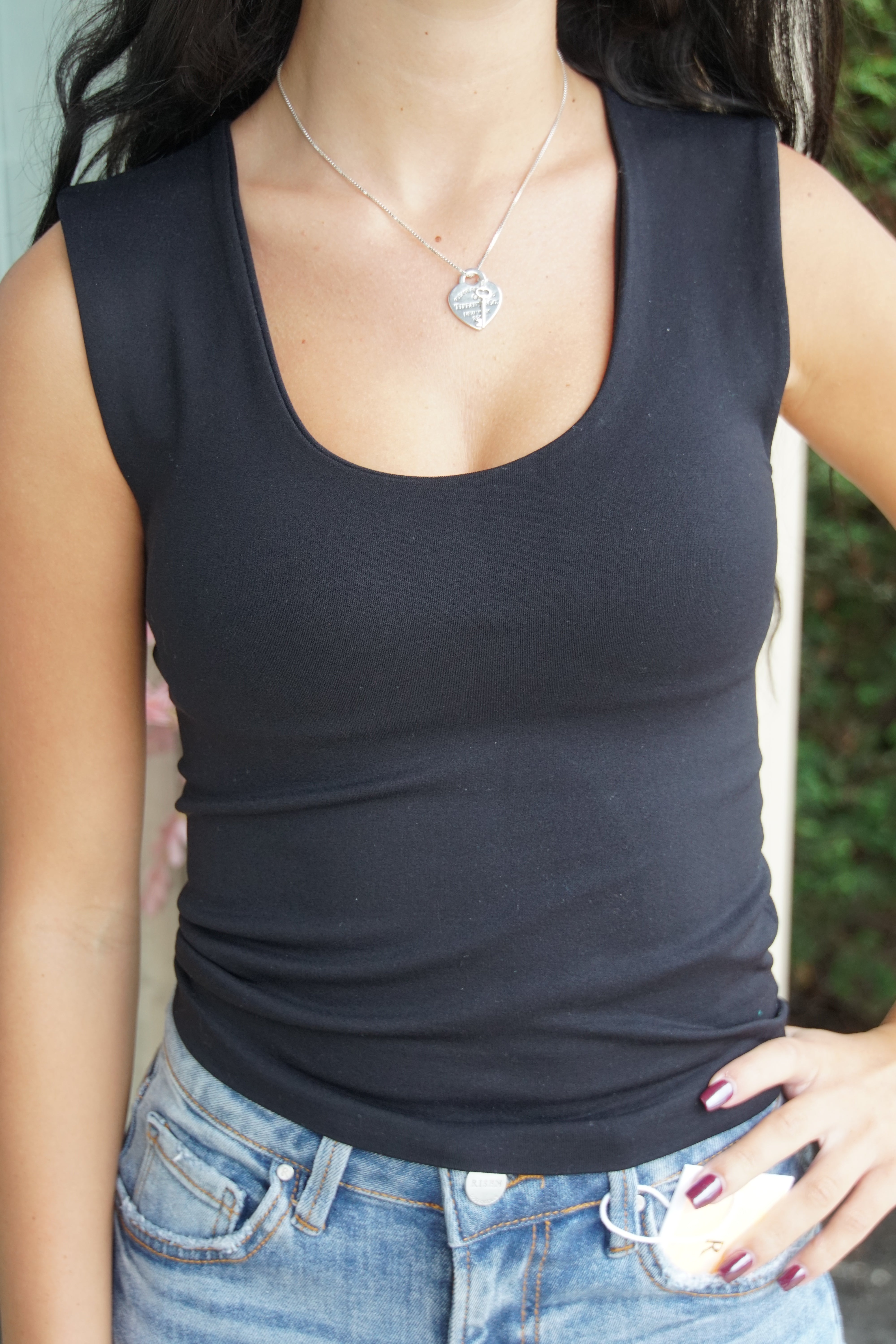 Meet your new favorite layering companion: the Black Seamless Tank. With its double-layered design and seamless finish, this tank keeps you comfy and cool all day long. The breathable fabric feels like a gentle hug, making it perfect to wear solo or under your go-to outfits. Elevate your layering game with effortless style and cozy comfort!