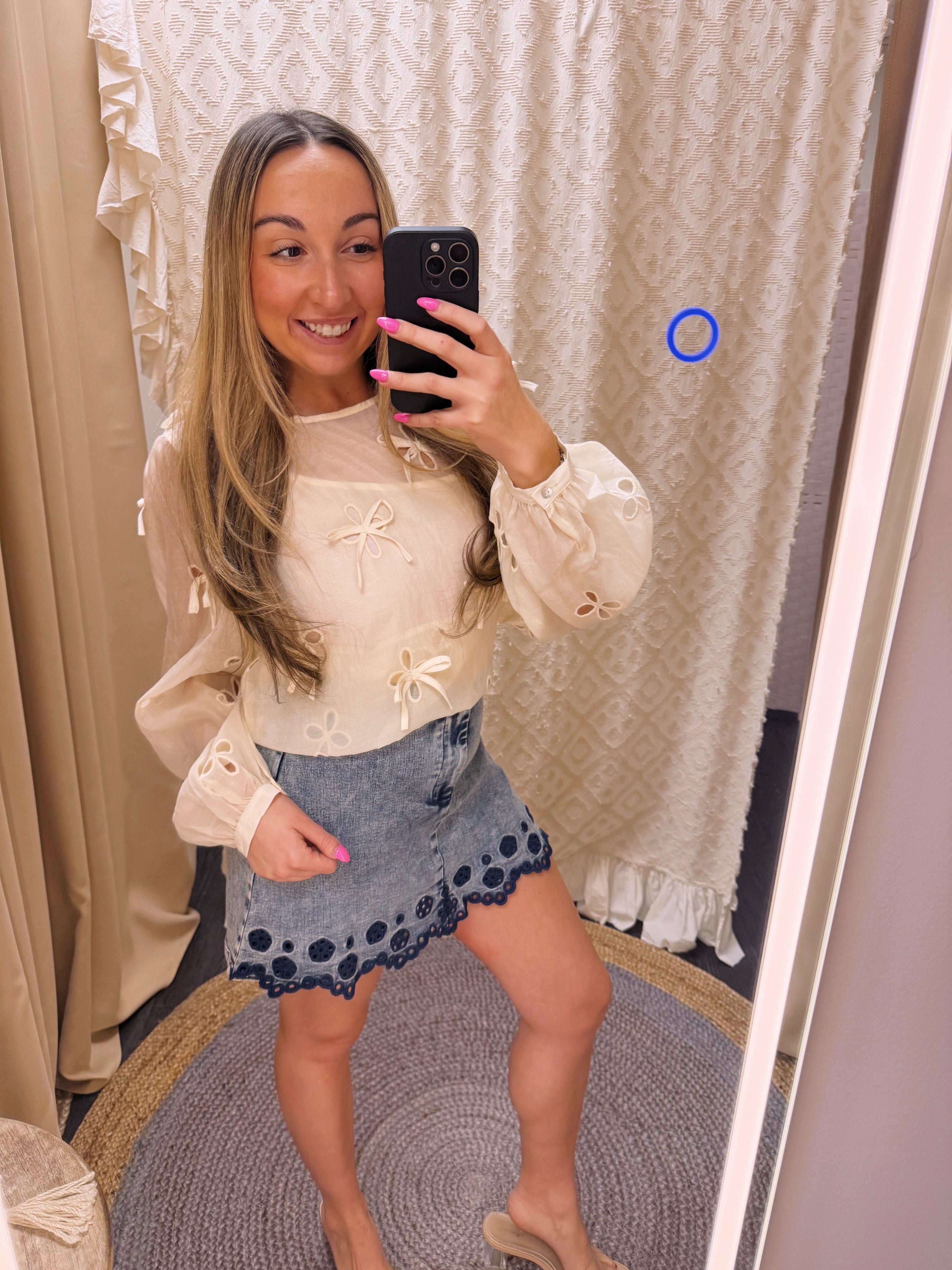 The bow detail does the talking so you don’t have to. It’s comfortable, flattering, and easy to dress up or down depending on your plans. Whether you’re going casual with denim or dressing it up for a night out, this top gives effortless “cute but cool” energy.Details:
