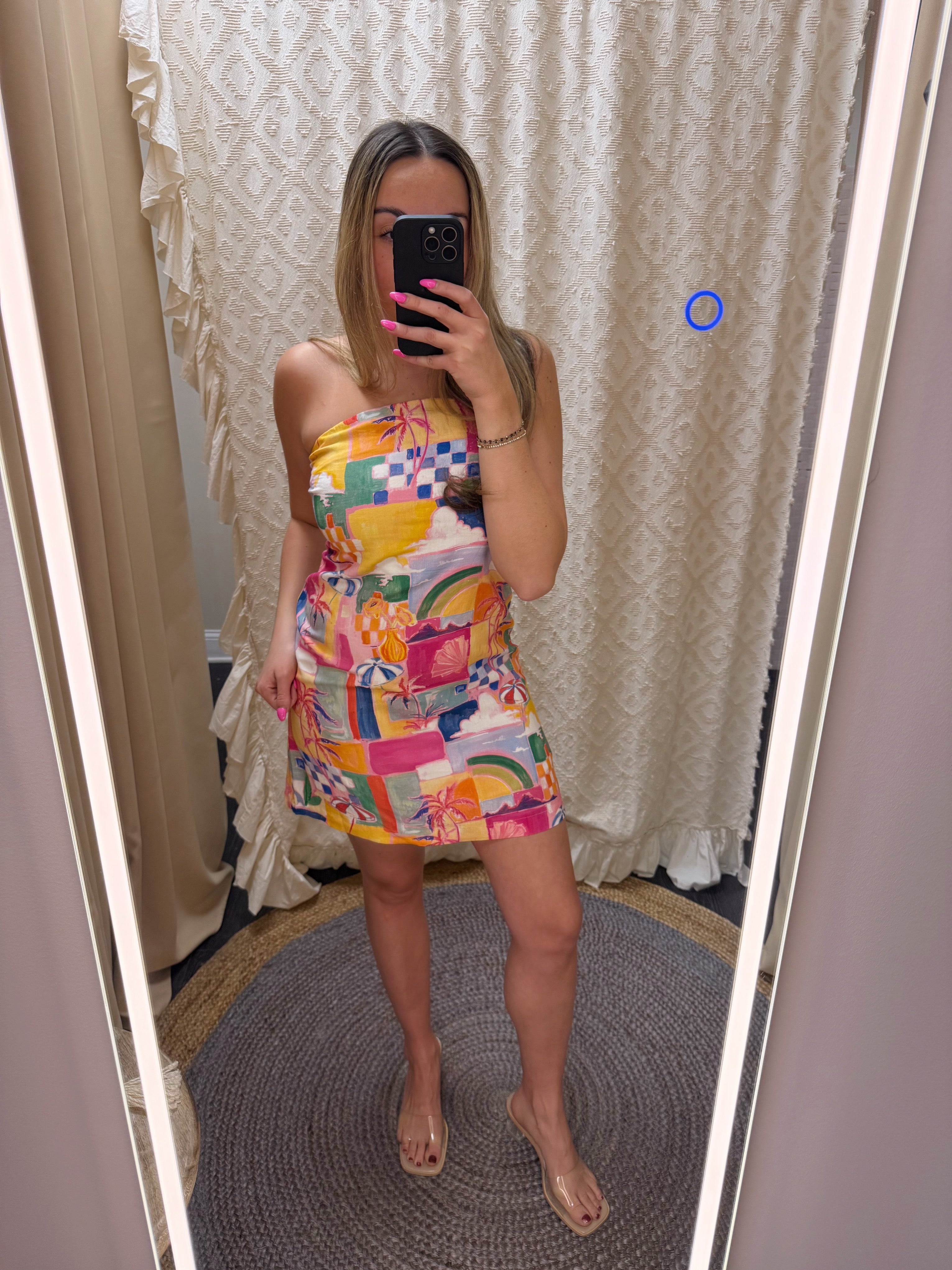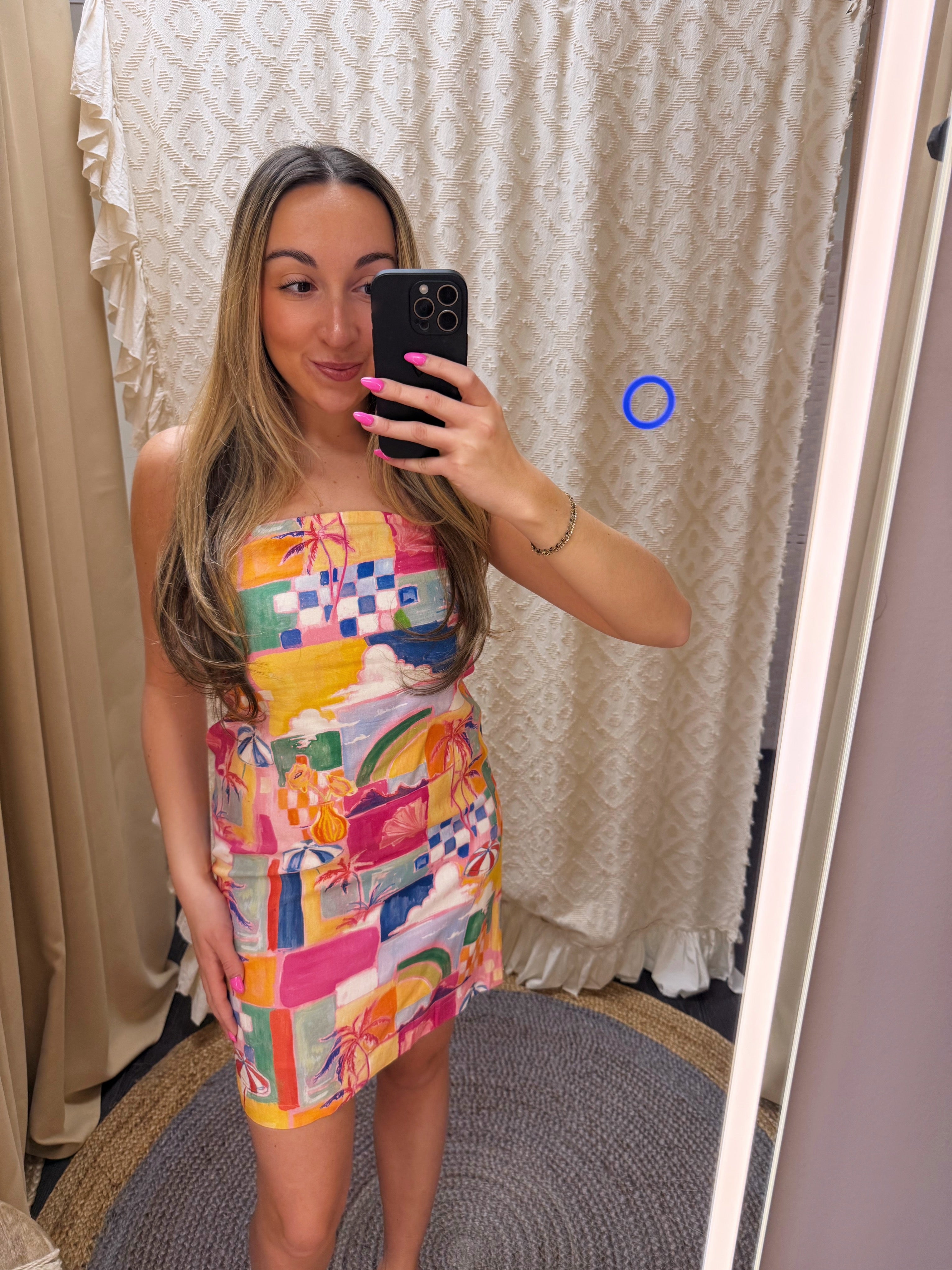 Bright, bold, and totally eye-catching — the Bahama Mama Mini Dress is pure vacation energy in dress form. The vibrant pattern instantly makes a statement while the mini silhouette keeps it flirty and fun.