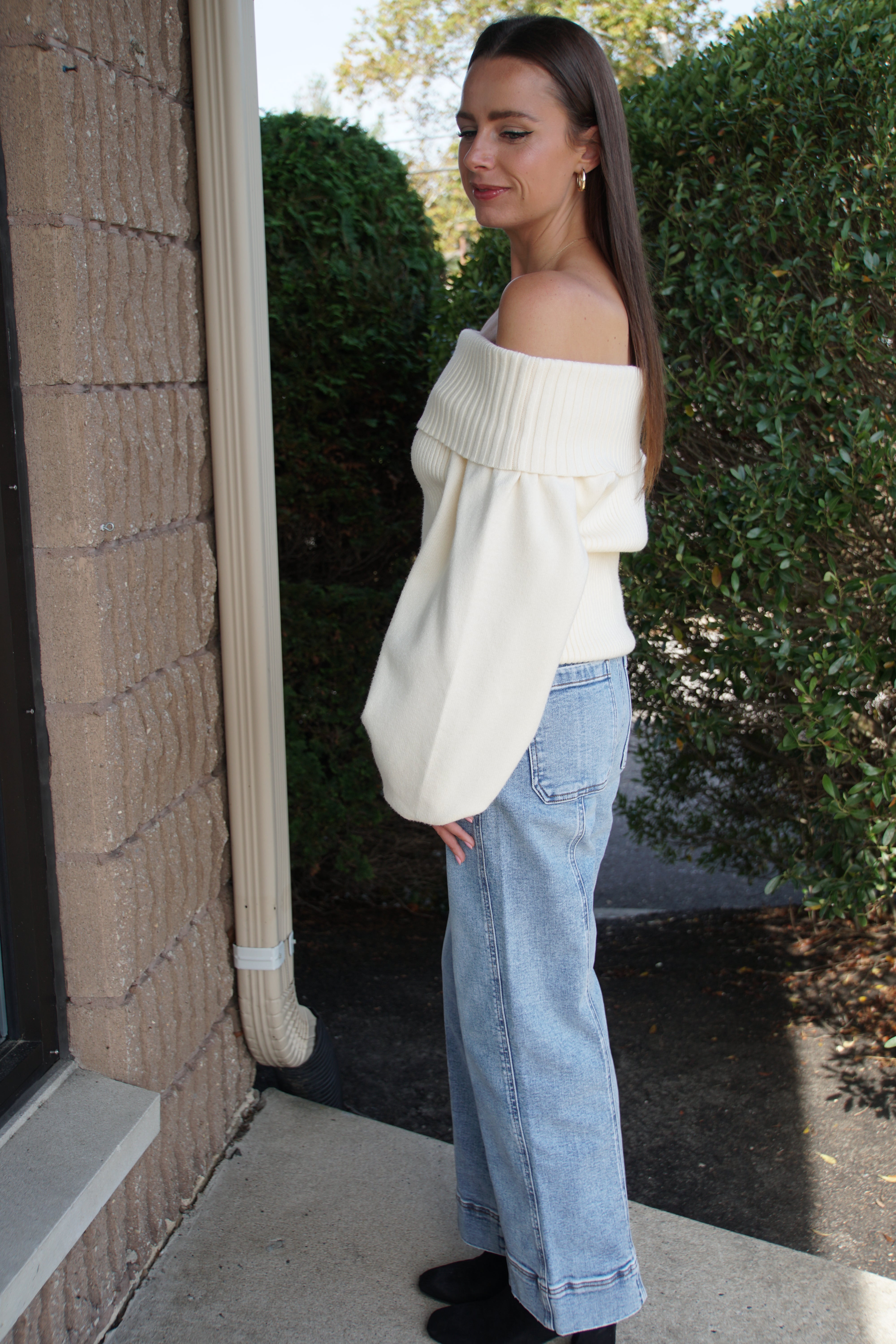 The Vanilla Puff Sleeve Sweater features a flirty off-shoulder silhouette that adds a playful charm to your holiday wardrobe. Its soft fabric makes it a cozy favorite, while the puff sleeves bring just the right amount of drama. Perfect for festive gatherings, it pairs effortlessly with leather pants or your favorite jeans for a chic, laid-back look.