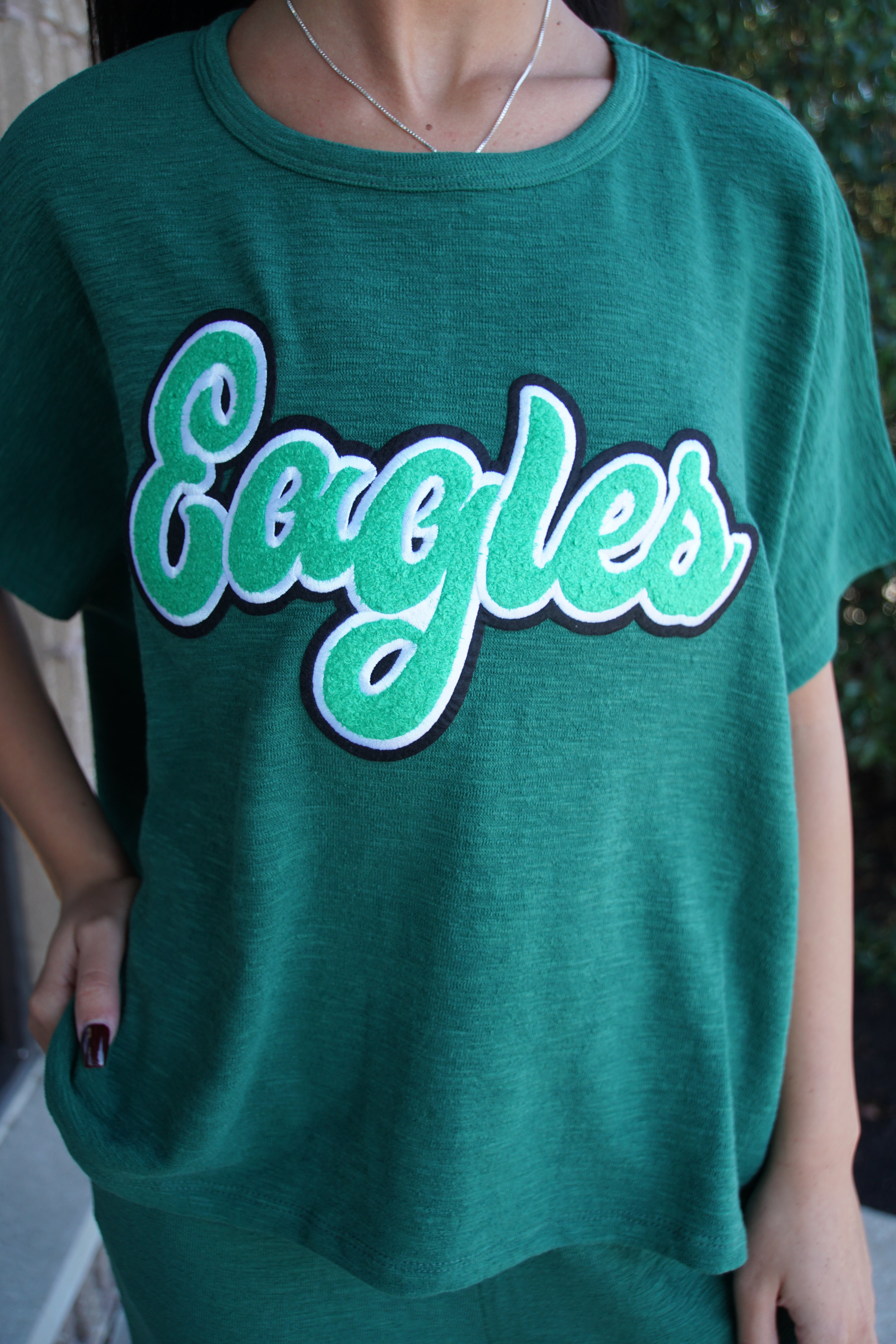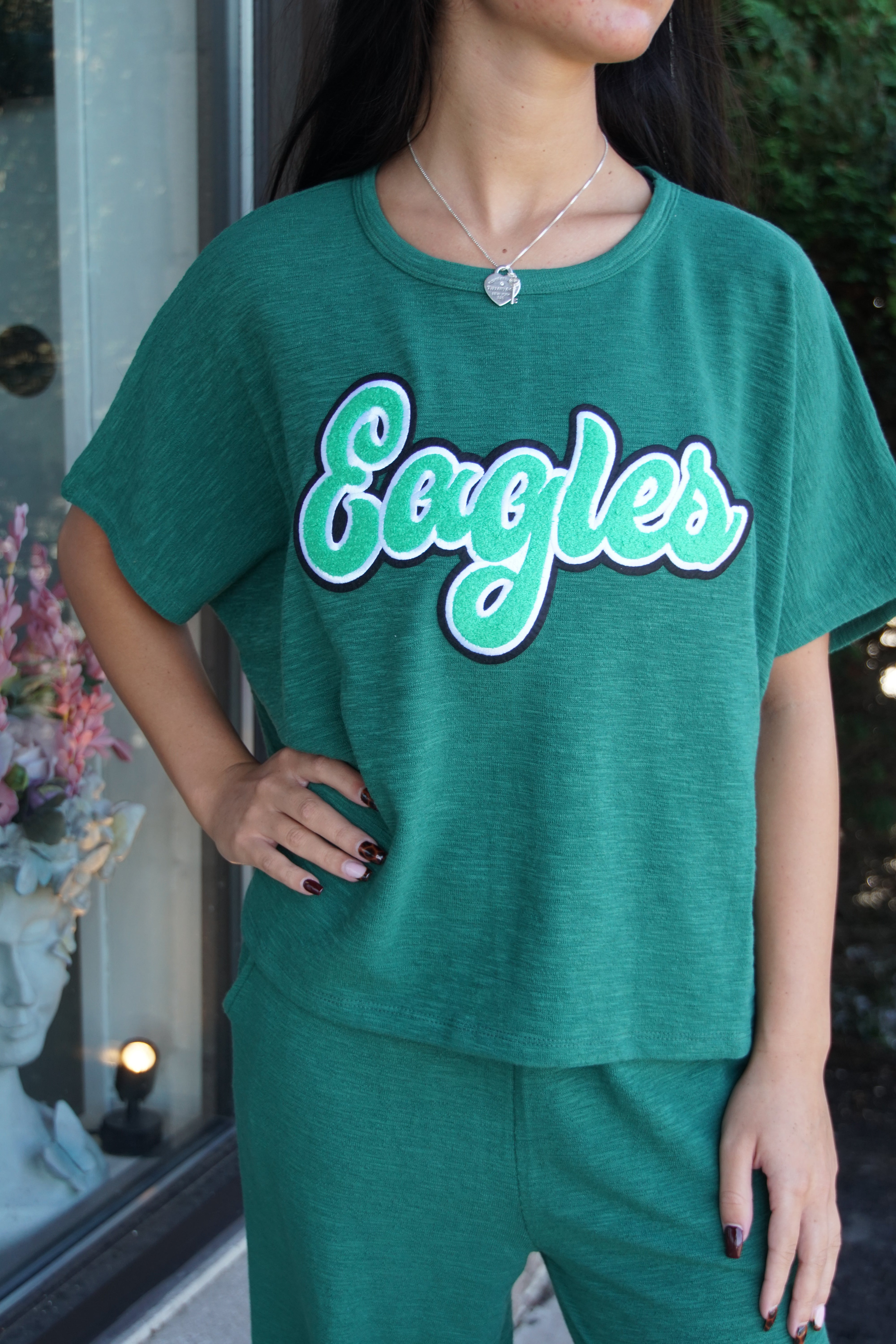 Get cozy and stylish in the Gameday Lounge Set, featuring a relaxed fit top in a vibrant green. Paired with wide-leg sweatpants that boast a comfortable, elastic waistband, this matching set is perfect for lounging or casual outings. Easygoing comfort meets playful charm in every stitch.