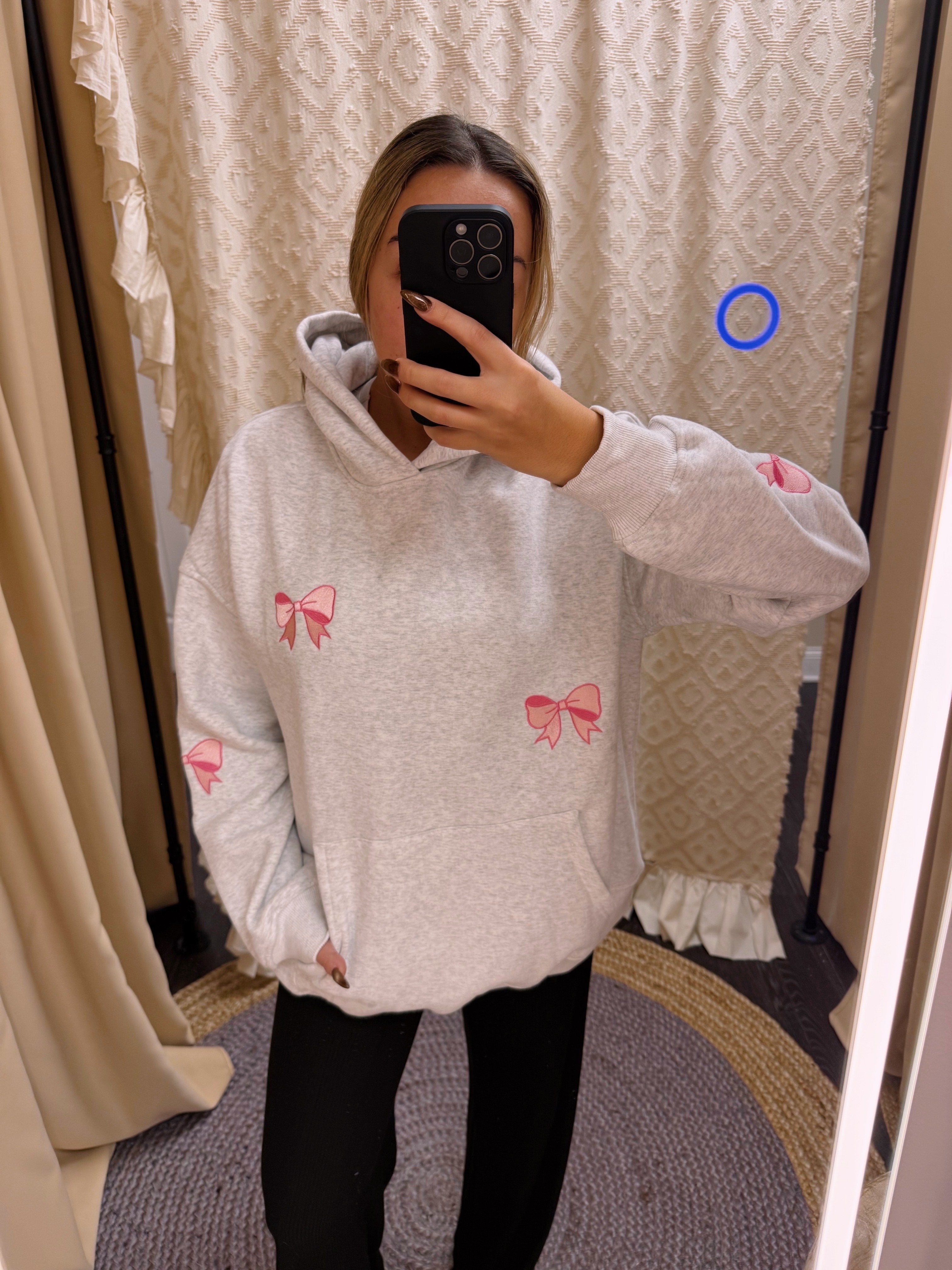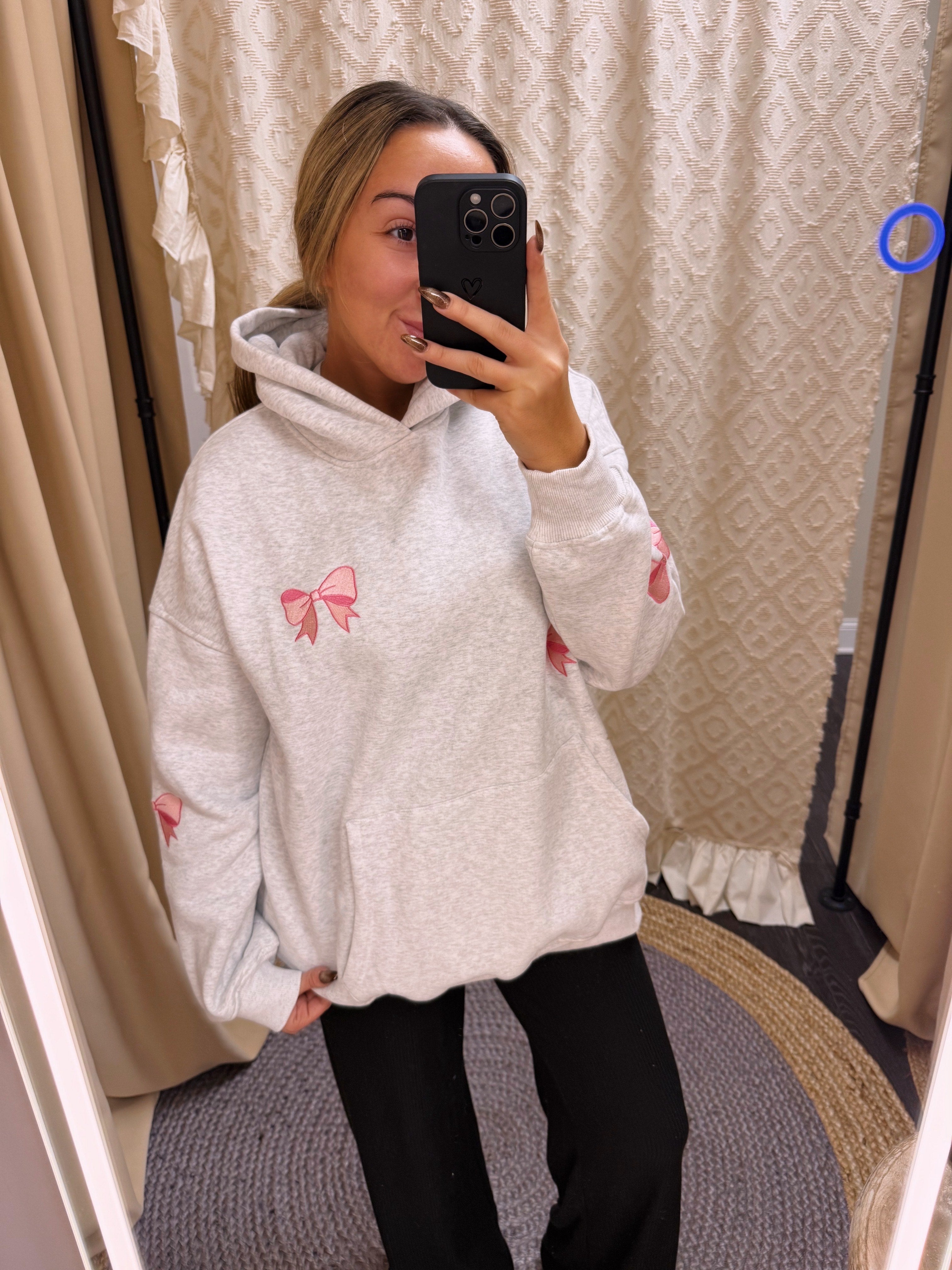 Runs oversized. Wrap yourself in cozy comfort with this Darling Bow Hoodie, designed for that perfect oversized, roomy fit that feels like a warm hug. The adorable bow embroidered detail adds a touch of whimsy and charm to your casual wardrobe. Whether you're lounging at home or running errands, this hoodie delivers effortless style with a playful personality.