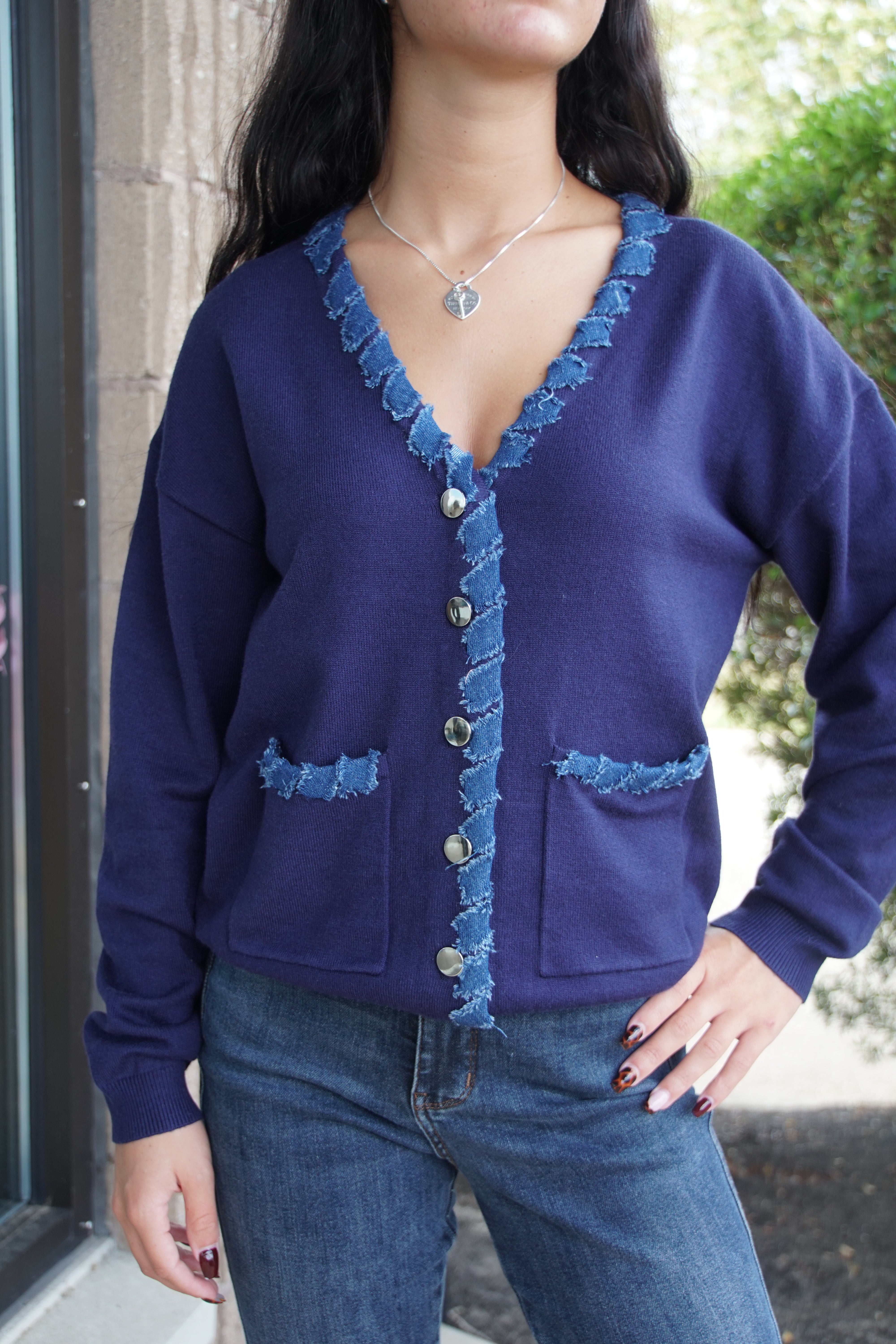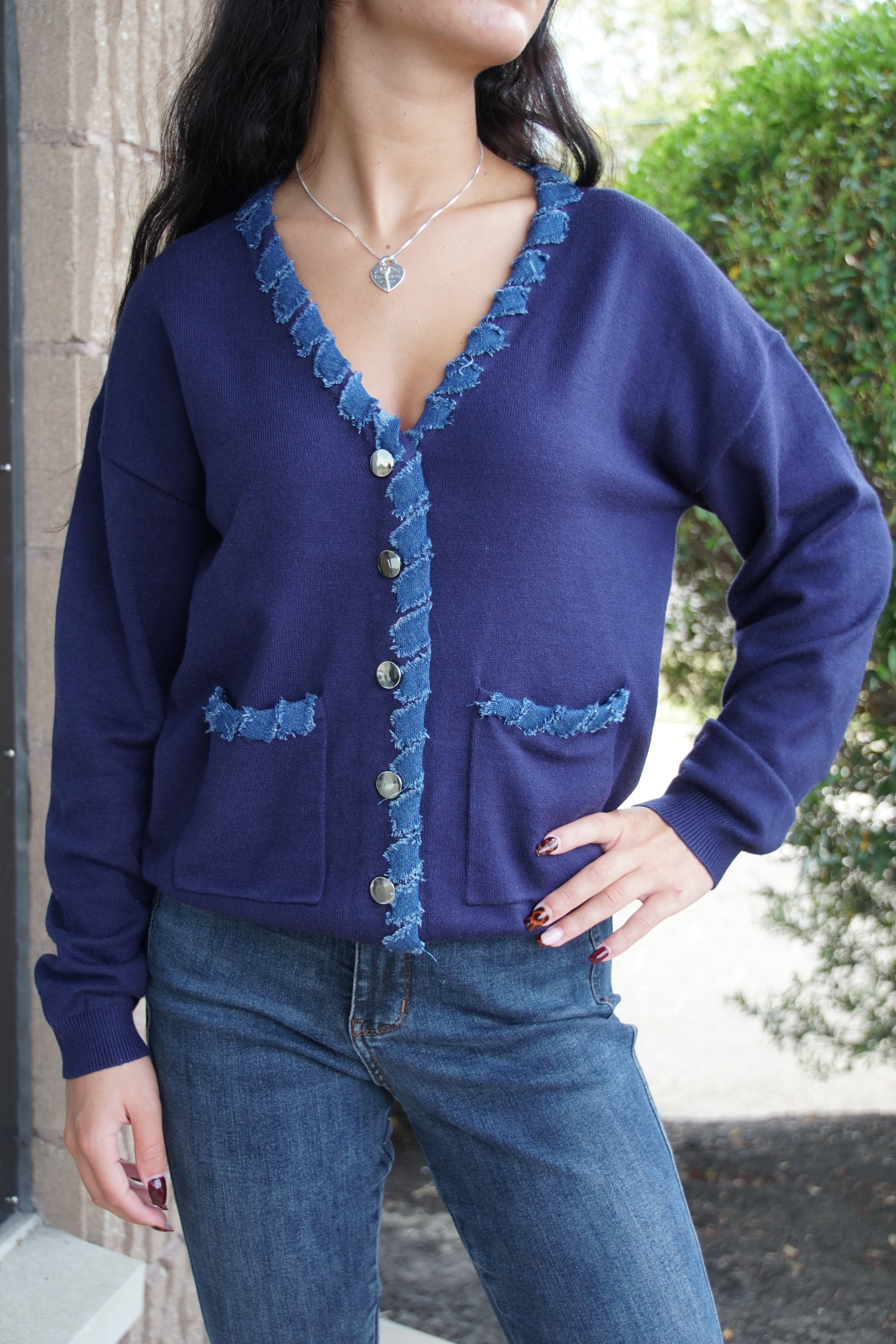 Meet your new go-to layer: the Softbound Denim Knit Cardigan. Crafted with care, this high-quality piece blends the cozy comfort of a knit with the casual cool of denim vibes. Perfect for adding an elevated touch to any outfit, it’s like your favorite sweatshirt got a stylish upgrade. Slip it on and instantly level up your look with playful ease.