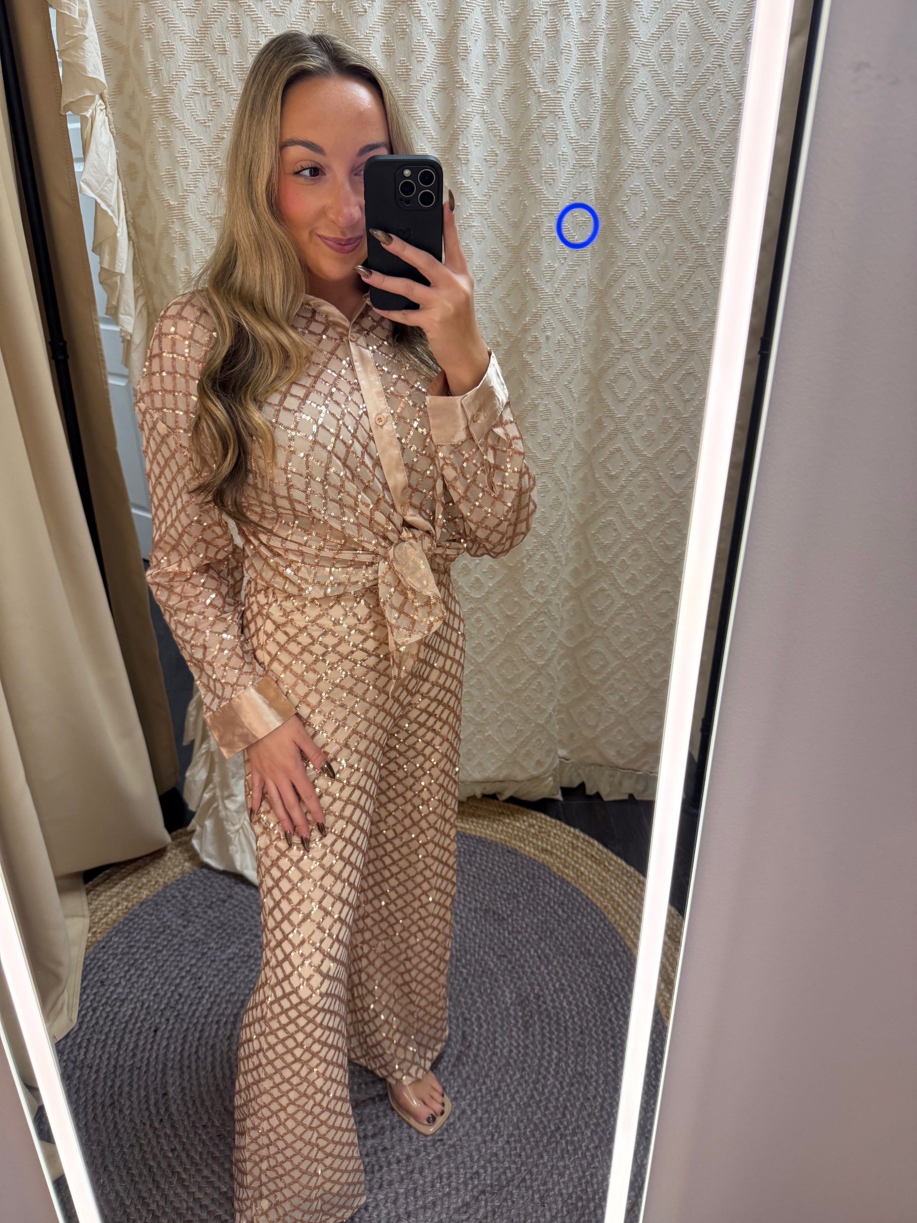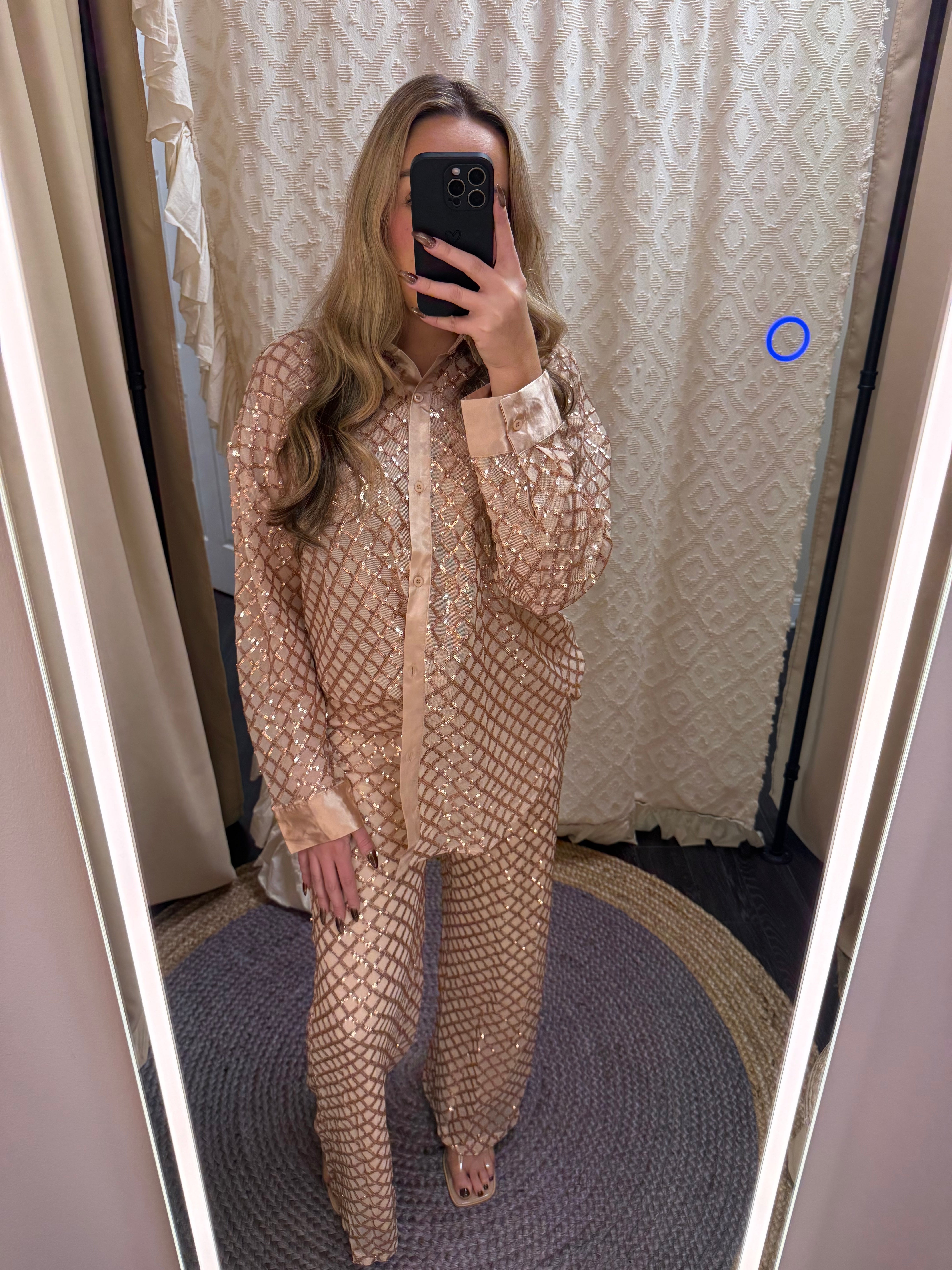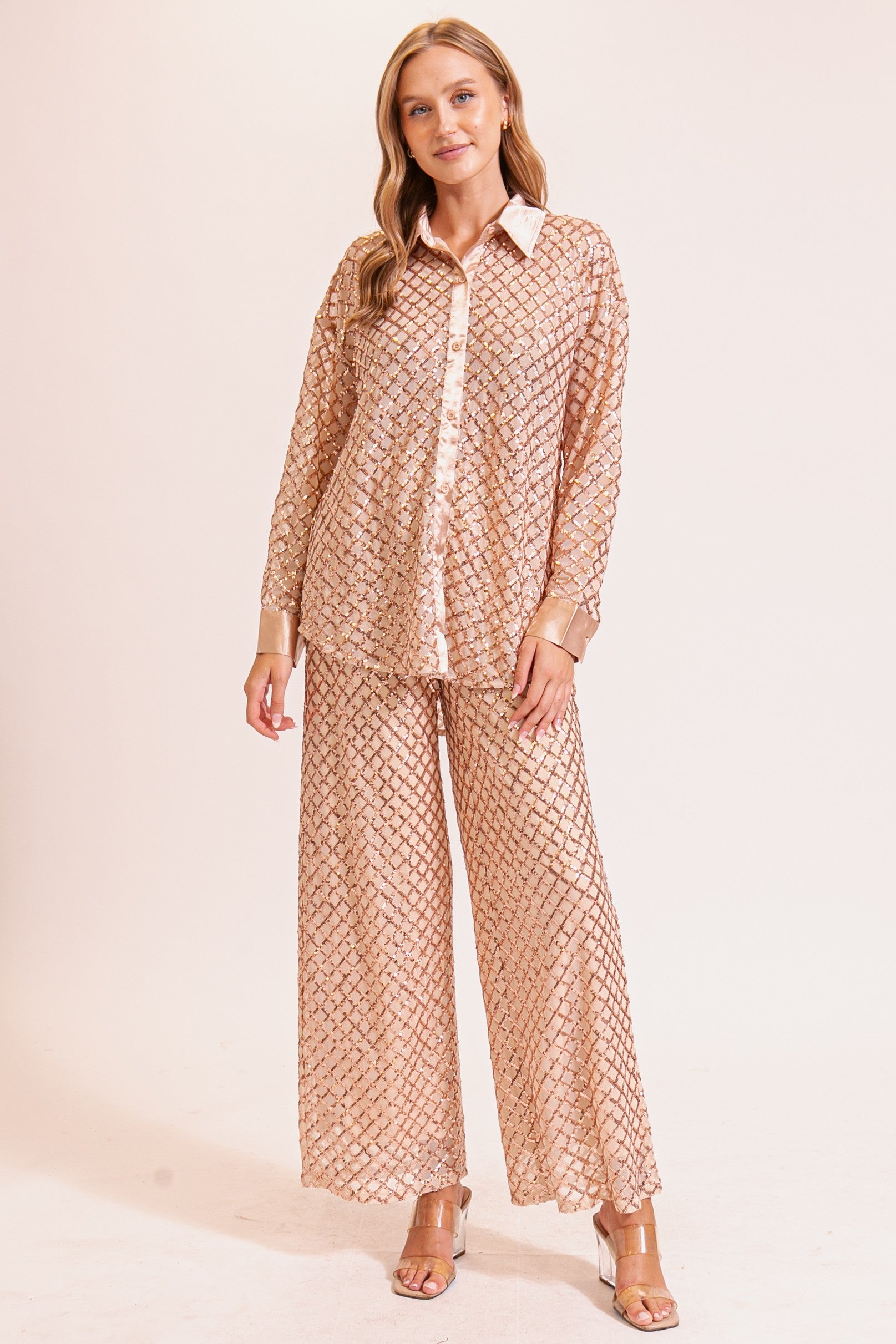 Make a bold entrance this season with the Rose Radiance Set—your ticket to turning heads at every celebration. This stunning holiday ensemble features eye-catching sequin details that catch the light with every move, creating an unforgettable shimmer. Perfect for festive gatherings, parties, and special occasions, this set delivers that coveted statement-making look without the fuss. Dress it up or down, layer it your way, and let your confidence shine as bright as the sequins.